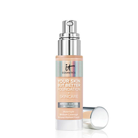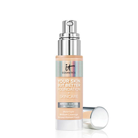 גלי את הסוד למראה עור מושלם ובריא עם Your Skin But Better Foundation + Skincare מבית IT Cosmetics. , מייק-אפ חדשני שמעניק לך הרבה יותר מרק כיסוי. , הוא משלב בתוכו טיפוח אינטנסיבי לשיפור מראה העור החשוף תוך שבועיים בלבד! , הפורמולה הקלילה במרקם מים ("Waterlight") מעניקה כיסוי בינוני הניתן לבנייה ויוצרת גימור קורן וטבעי שנראה בדיוק כמו העור שלך, רק טוב יותר. , הוא מטשטש פגמים, מצמצם מראה נקבוביות ומעניק לחות לאורך כל היום. , מתאים לכל סוגי העור ומעניק תחושה נוחה ורעננה ללא כבדות.